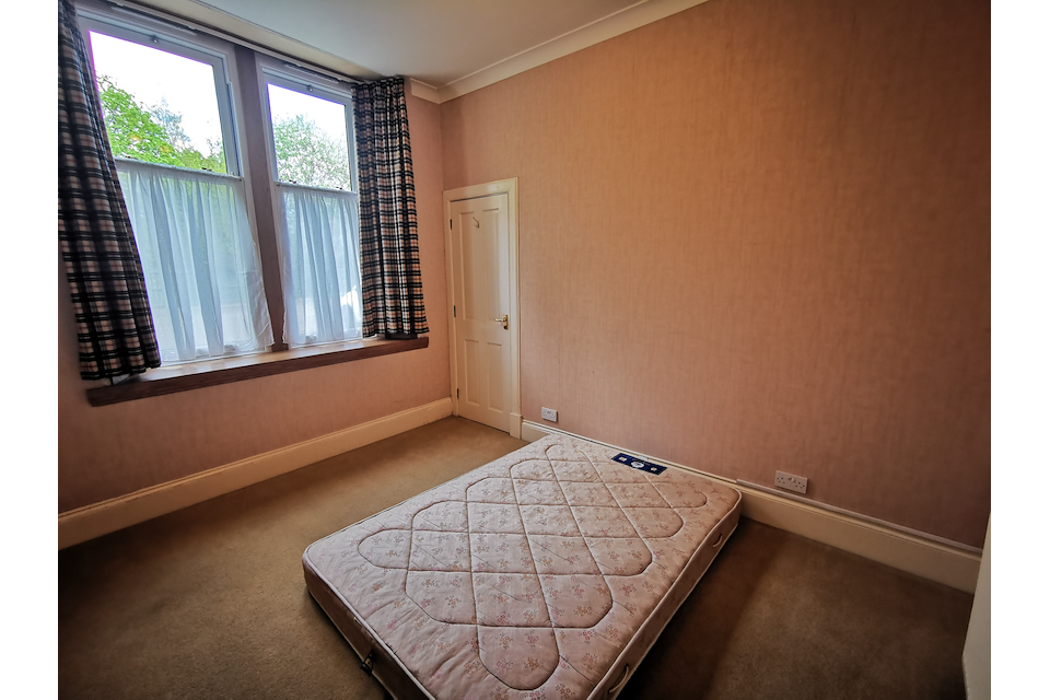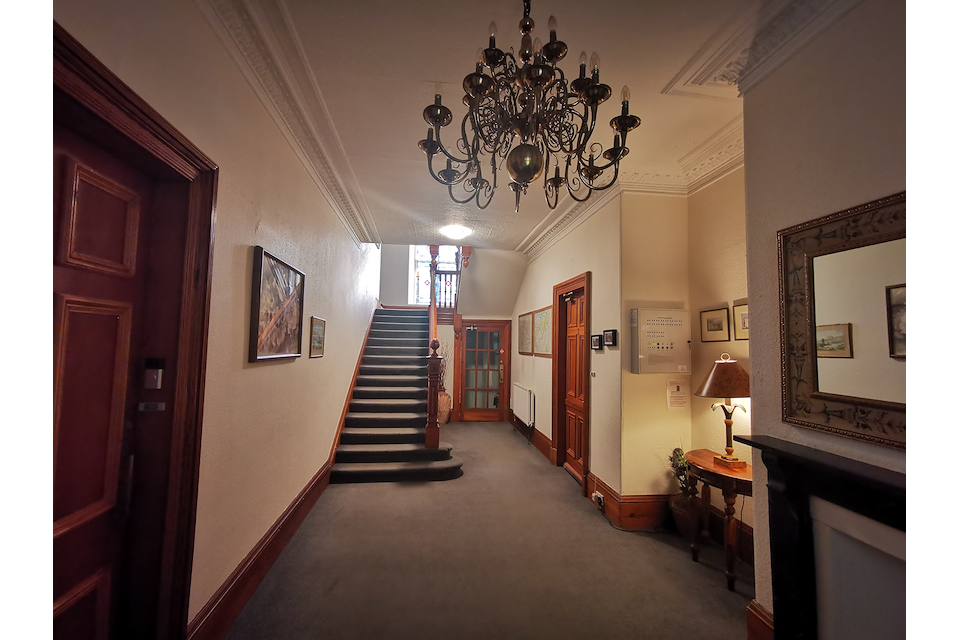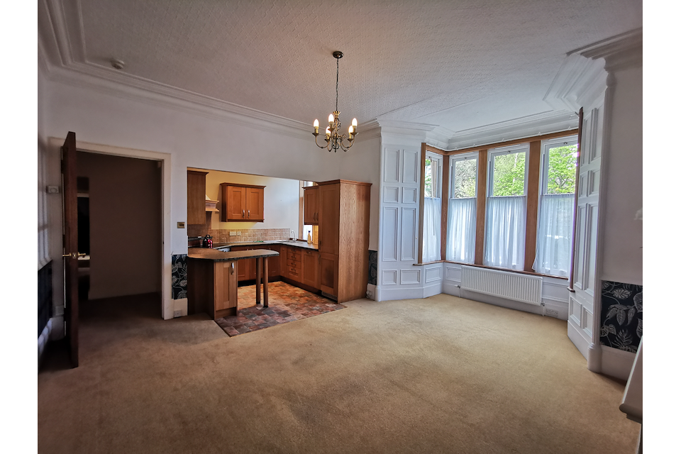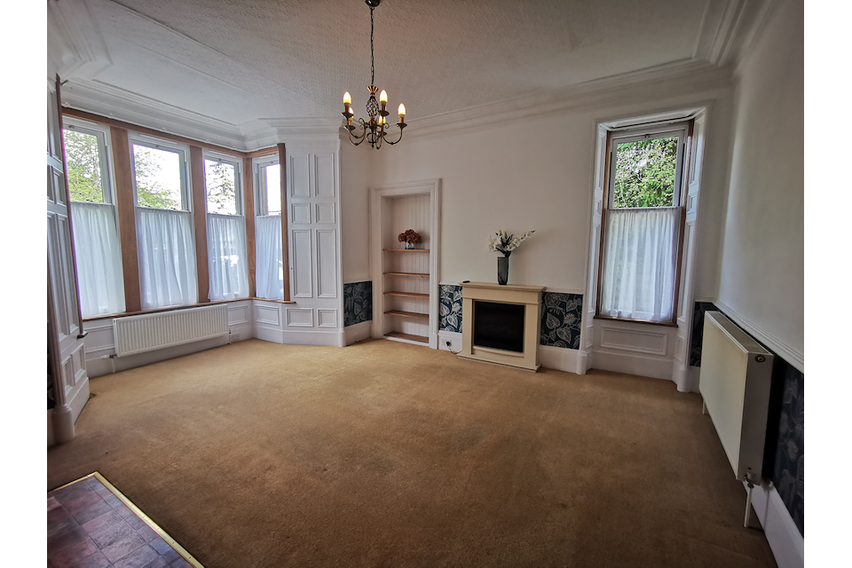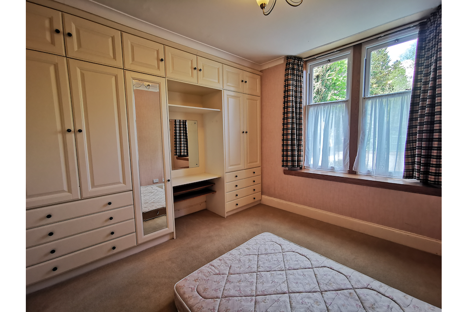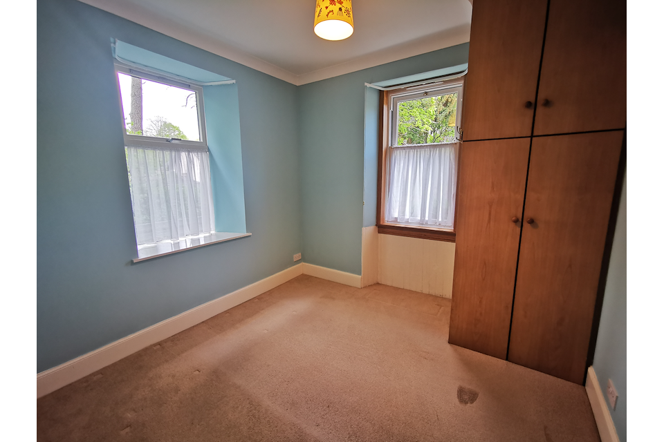 This is a spacious and bright 3 bedroom, ground floor apartment with attractive bay window over two floors. It is in a secluded location with large grounds in a peaceful residential area of Grantown-on-Spey.