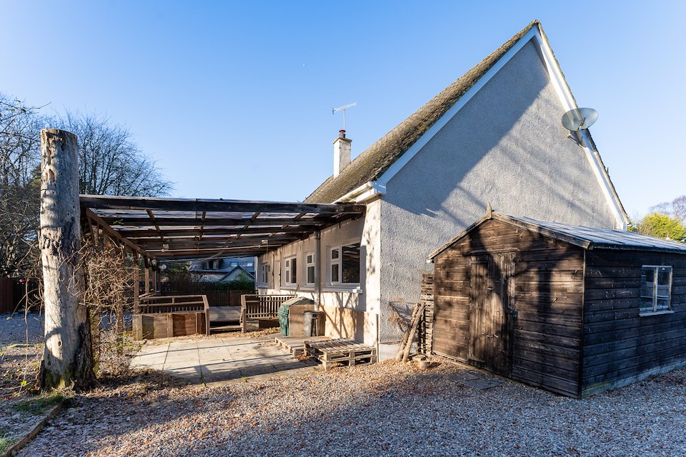 Spacious three-bedroom detached Bungalow located within a small cul-de-sac of similar detached Properties just outside Aviemore village. In a relatively secluded location at Inverdruie next to Coylumbridge, this attractive property is just off the ski road and close to nearby woodlands and the river Druie. The property has been extended to the front and is in good order throughout. There is an open front garden with a large covered rear decking area & patio all within a mature enclosed garden.