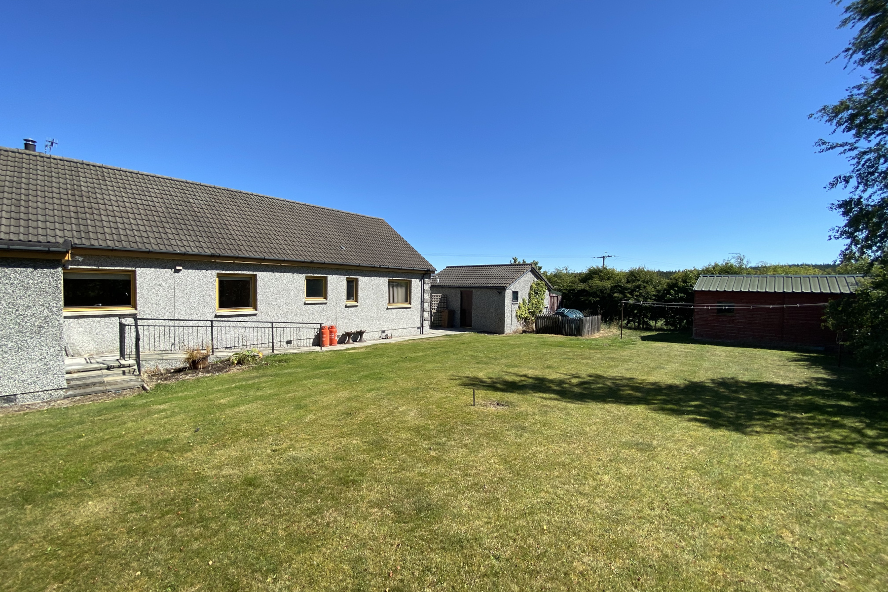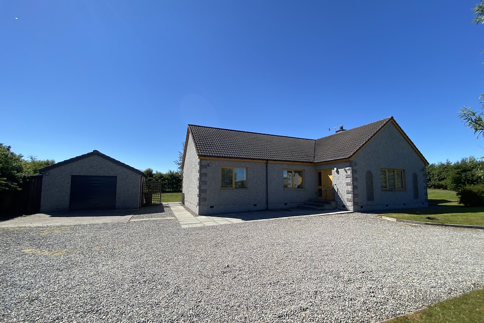 Opportunity to acquire a spacious customised design four bedroom (one en-suite) detached bungalow with superb open views within a large landscaped site extending to approximately 2/3 acre. In a pleasant farmland location just outside the popular village (2 miles) this attractive property is in good order throughout with outstanding views to surrounding hills and woodlands. The property offers spacious accommodation, ideal as a family / work from home residence or as an investment property. There is a low maintenance screened garden with mature boundary hedges, mostly laid to lawn with established shrubs and rock garden. There is also a detached garage with WC and power, lighting and a large timber outbuilding & store.