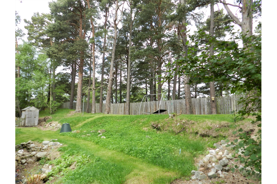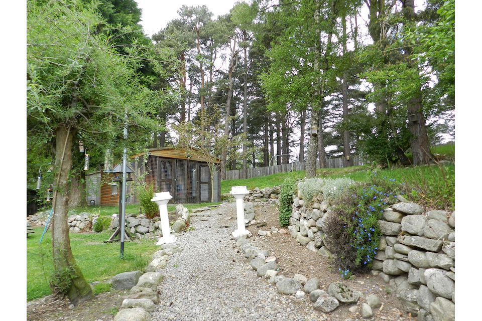 - Extensive split level garden bordering onto neighbouring woodlands with timber summer house.