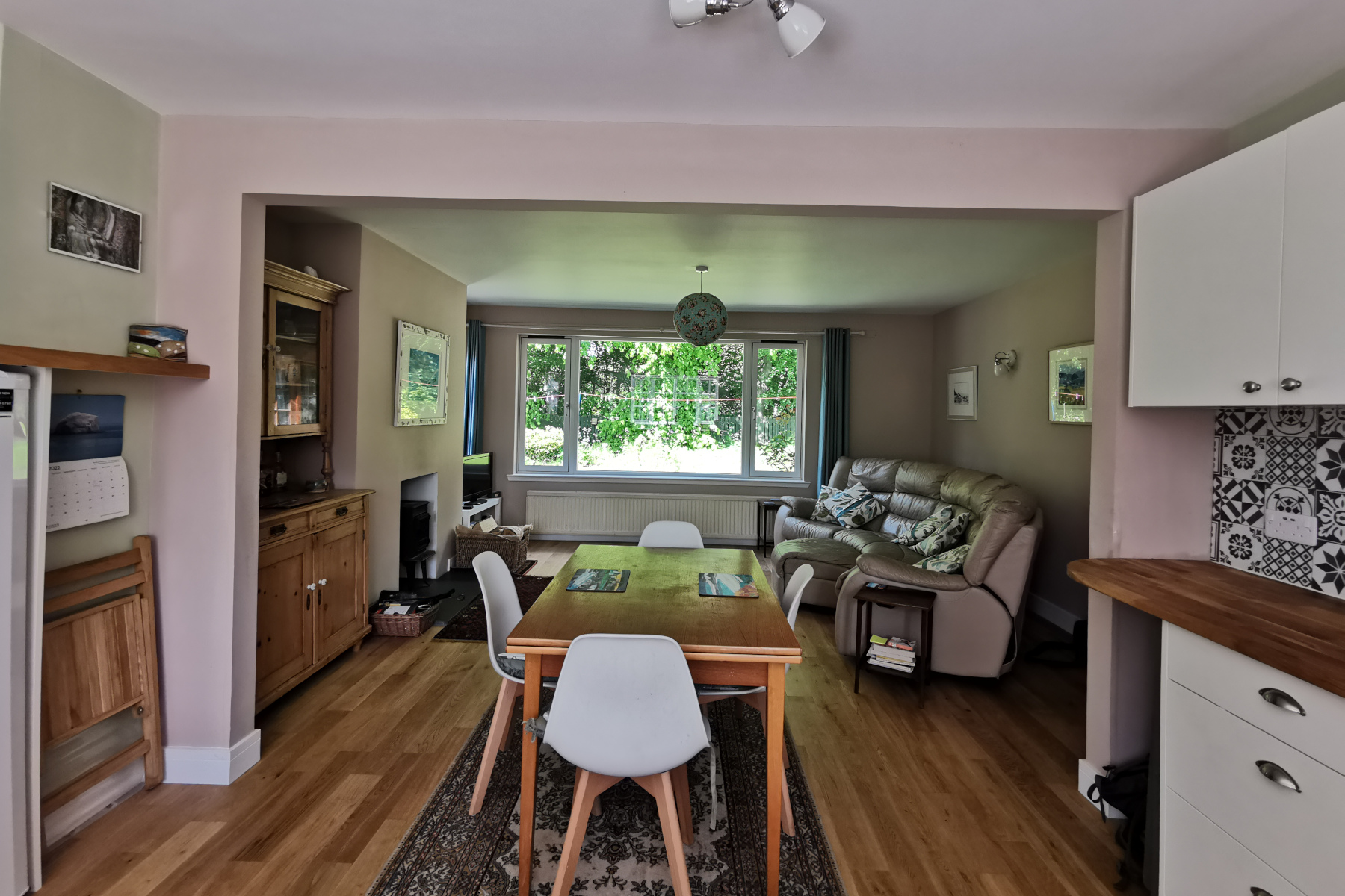 Detached, spacious, three / four bedroom extended bungalow in a prime sunny location near the centre of the town backing onto woodlands. This bright and airy property has been considerably extended with an open plan kitchen / living room, an upstairs suite of bedrooms / en-suite and attractive rear sun room and sitting room / office. There is also an extended integral garage, all within substantial established gardens.