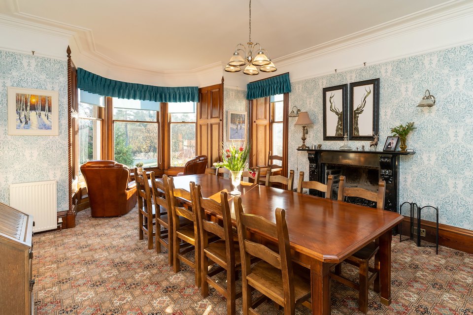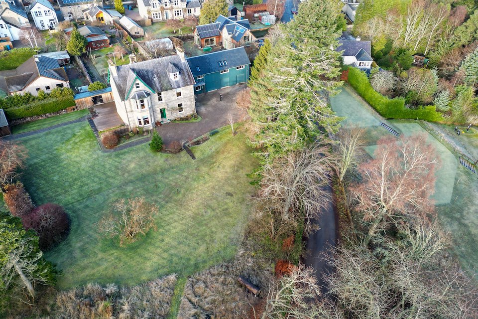 In a superb location with great views to the nearby renowned golf course, forest and mountains, this spacious, five bedroom detached family villa or potential “work from home” property is offered for sale as a traditional period family property. The villa and sympathetic extension are enhanced by attractive garden grounds which extend to approx. 1 acre with outstanding panoramic views to surrounding woodlands and hills. The centre of this popular town and the famous River Spey is within easy walking distance with all local amenities nearby.