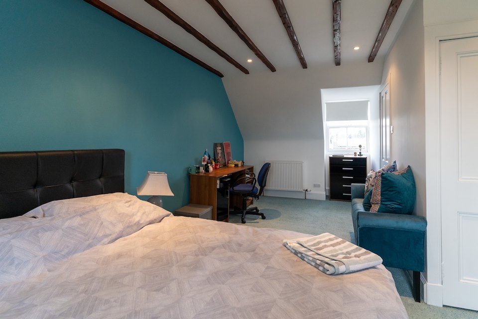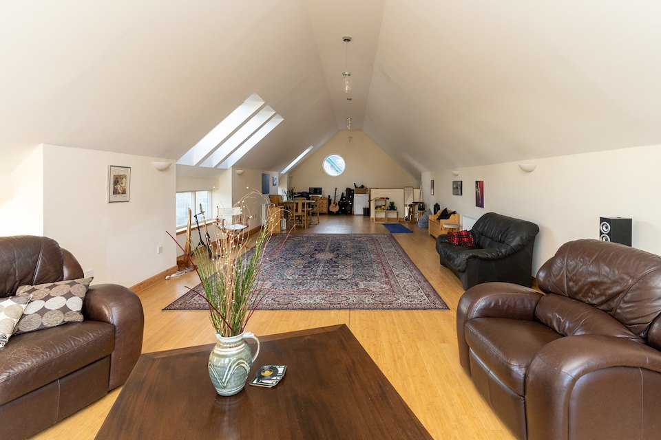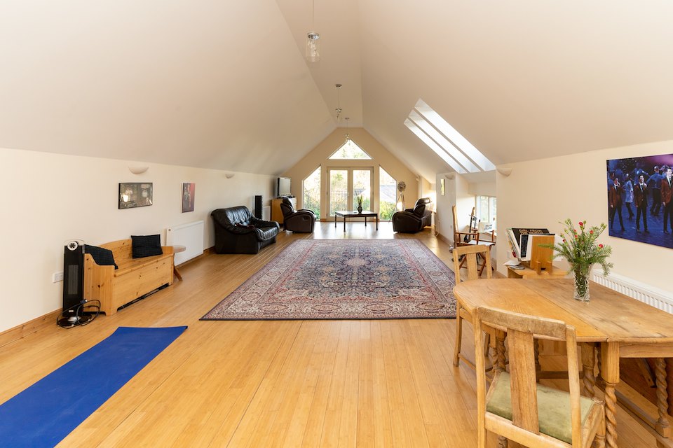 - Extension providing office area, plant room, store and upstairs open plan studio / games room